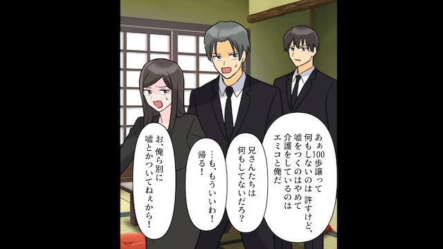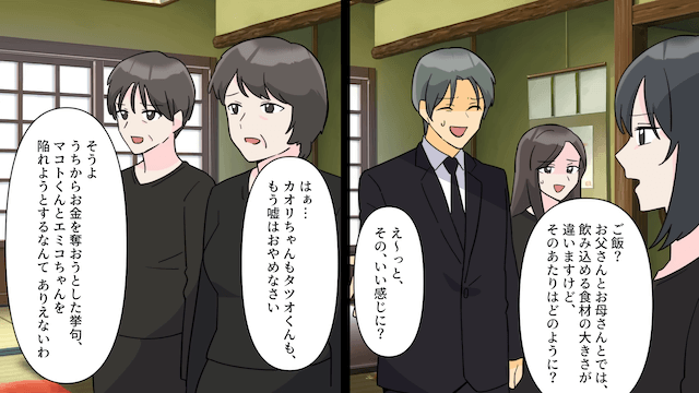 すると親戚たちも呆れ返り、居心地の悪くなった義兄と義姉は逃げるようにその場を去っていったのでした。