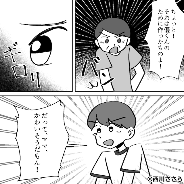 そして息子が「僕のご飯一緒に食べよ?」と主人公を誘うと、思い通りにならなかった義母は怒り始めるのでした。