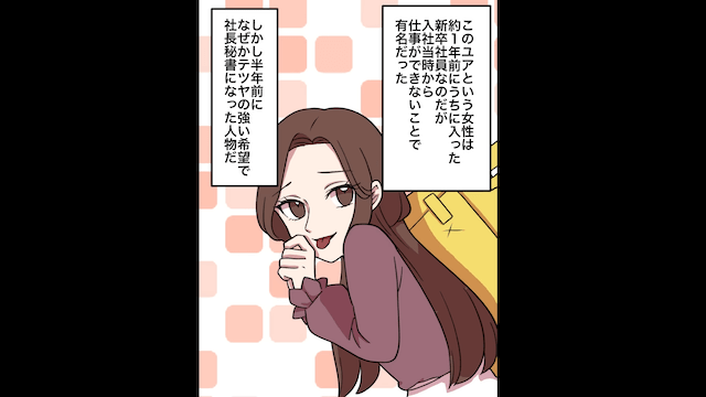 そして35年が過ぎた今、夫と秘書の距離が不自然に近いと社員から苦情が入ったため、主人公は2人を問い詰めて…。