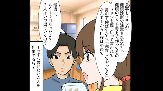 主人公が夫と娘と楽しく暮らしていたある日、夫が勝手に義妹と姪との同居を決めてしまいました。 義妹と姪は1ヶ月経っても家から出ていかず迷惑三昧で、主人公が夫と義妹に注意をするも、話にならず…。