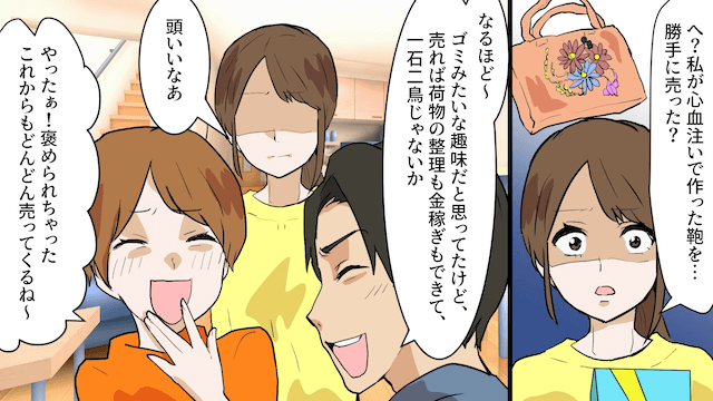 そんなある日、義妹が主人公の自作のカバンを勝手に売ってしまい…。