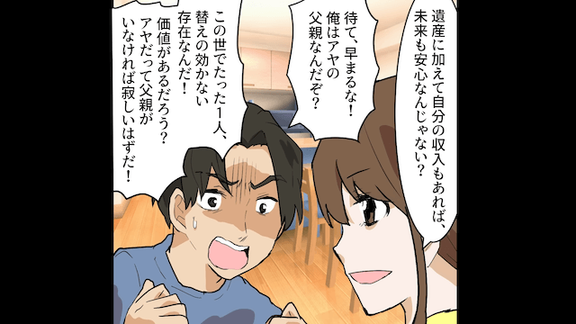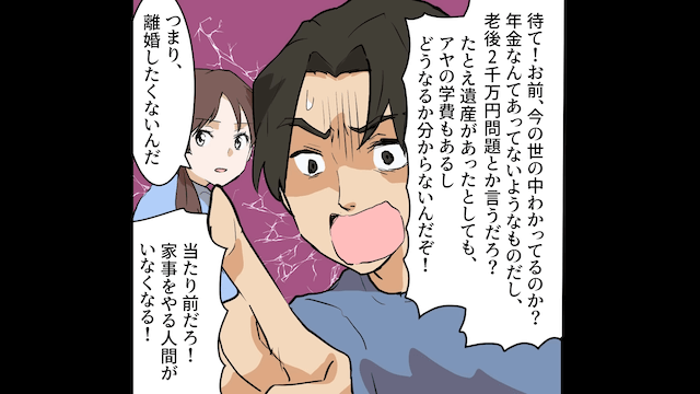 しかし主人公が自分にも安定した収入があると伝えると、夫は焦って「父親がいなければさみしいはずだ!」と主張し始めたのでした。