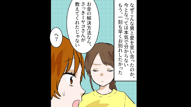 娘に「お母さん、私は大丈夫」と背中を押され、離婚を決めた主人公。 そして主人公が事前に用意していた離婚届を突きつけると、夫はお金の問題を挙げて離婚を拒否したのです。