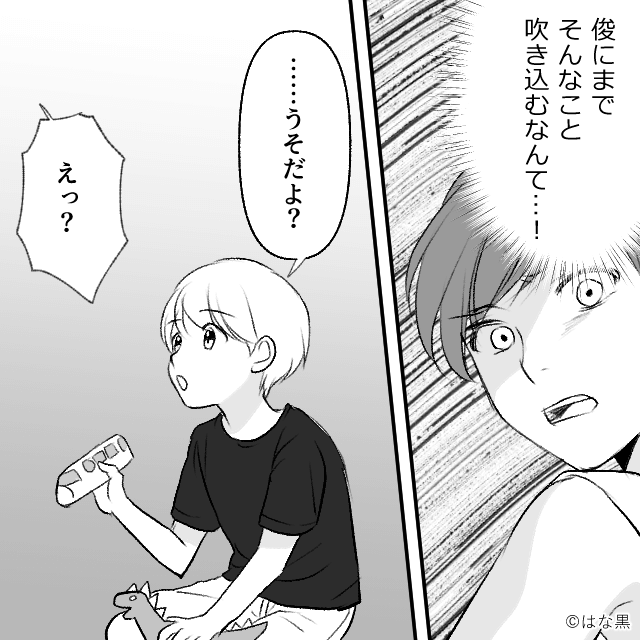 夫や息子に嘘を吹き込み、主人公を孤立させようと企む義母。 しかしすべてを見ていた息子は「嘘だよ?」と義母の嘘を指摘したのでした。