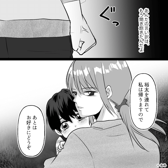 そして主人公は言い訳をする夫に構わず、息子を連れて帰宅したのでした。