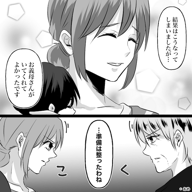 女性から挑発するようなメッセージが届き「余裕でいられるのもあと少しだけどね」とつぶやいた主人公。 その後、主人公は証拠の数々を義母に渡し、反撃を開始するのでした。