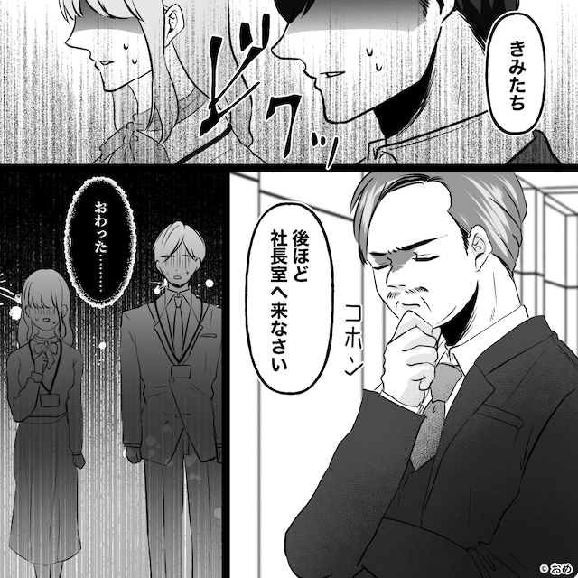 社長にも浮気がバレ、夫と女性は顔面蒼白になるのでした。