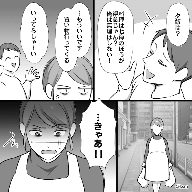 呆れた主人公は夫には頼らないことにするのですが、ある日の買い物帰りに…。
