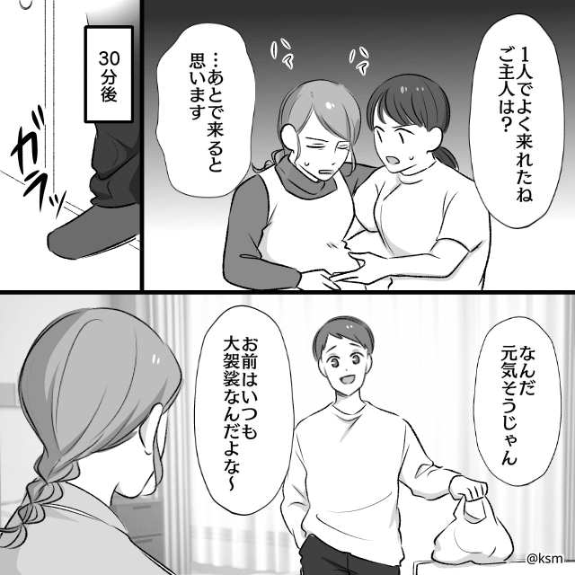 その30分後、病院に来た夫は主人公を気遣う様子もなく、頼んだ荷物すら持ってこなかったのでした。