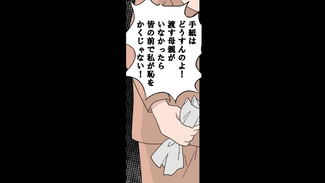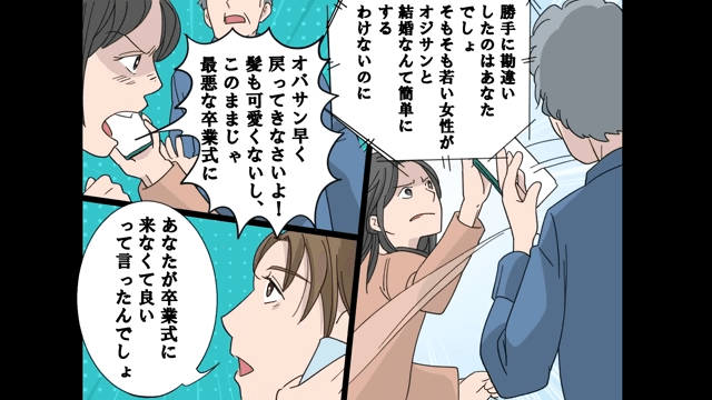 浮気相手が卒業式に来ないことを知った娘は、主人公に「早く戻ってきなさいよ!」と言いました。 それに対し主人公が「あなたが卒業式に来なくていいって言ったんでしょ」と答えると、娘は「手紙はどうすんのよ!渡す母親がいなかったら皆の前で私が恥をかくじゃない!」と怒り…。