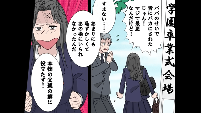 娘は手紙を渡す親がいなかったため、恥をかいてしまいました。 その後、娘は途中で教室を出ていった夫に「本物の父親の癖に役立たず!」と怒り…。