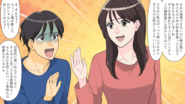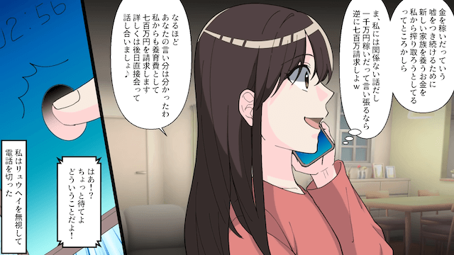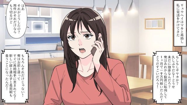 そして数週間後、元夫と再婚相手を呼び出した主人公は、その場に再婚相手の母親も連れていったのでした。