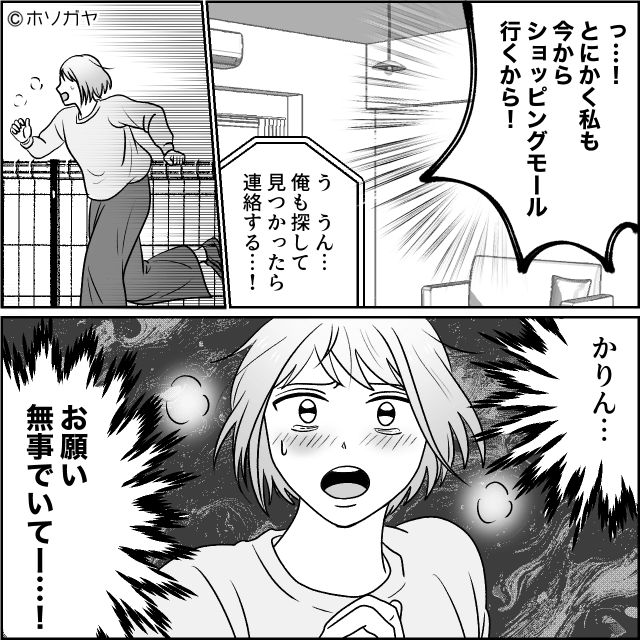 1週間後、買い物に行く夫と娘を見送った主人公。 すると数時間後、慌てた様子の夫から、娘がいなくなったと電話がかかってきます。