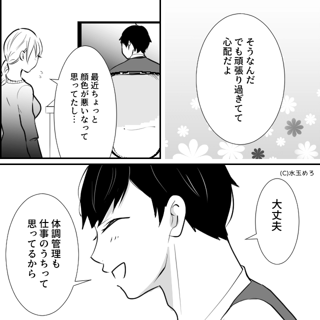 営業部のエースとして、毎日丁寧に仕事に取り組んでいた主人公。 ある日残業をしていると、女性社員が主人公の体を気遣ってくれました。