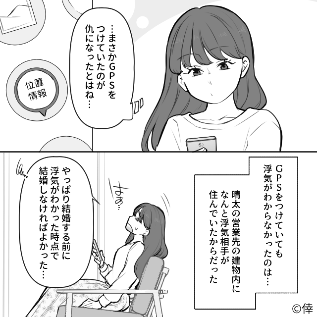 「浮気相手はその人だけです…」と白状し、主人公にすがる夫。 しかし今度こそ許されず、主人公と夫は離婚します。