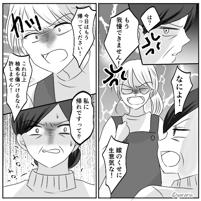 息子は「なんで可愛くないって言ったの?」と義母を問い詰めました。 主人公も我慢の限界で「今日はもう帰ってください!」と怒鳴ります。