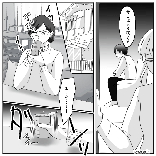 その日の夜「なんでお義母さんの暴走を止めないの?」と夫に尋ねた主人公。 すると夫は「母さんを怒らせると面倒くさいから…」と娘より自分を守る発言をします。