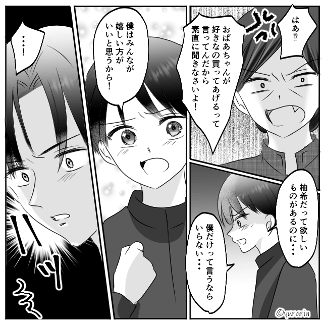 息子にだけプレゼントをしたい義母は必死になだめますが、息子は「僕はみんなが嬉しいほうがいいと思うから!」と答え…。