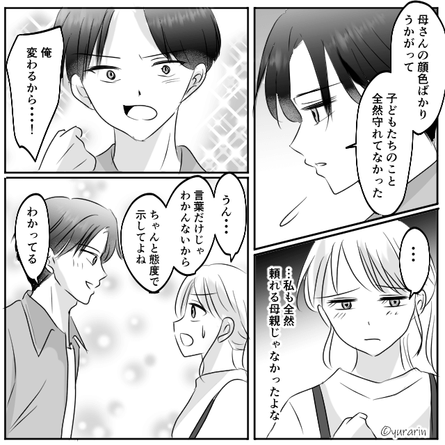 帰宅後「俺、今までどうかしてた」と家族に謝罪をした夫。 夫は息子の言葉で目が覚めたようで「俺変わるから!」と決意します。