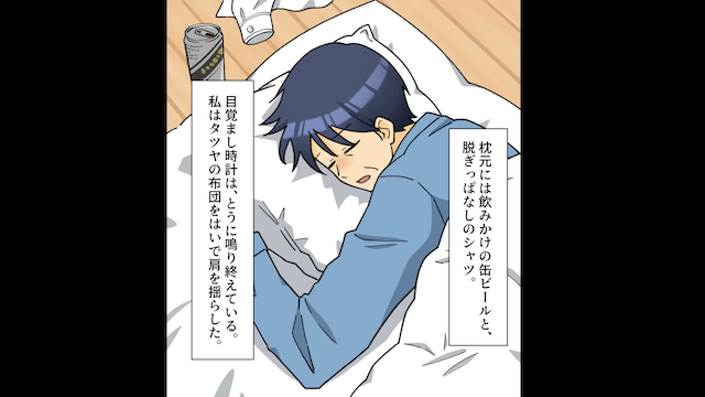 今朝、主人公は酔っ払って寝ている夫を起こしたのですが…。