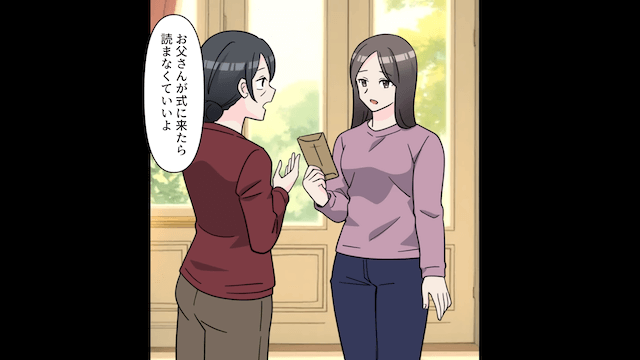 今回は『結婚式で…新婦の”父”が欠席したまさかの理由』を紹介します。 結婚式の数日前、娘から封筒を受け取った主人公。 娘は「私の気持ちだから。お父さんへの手紙」と言い…。
