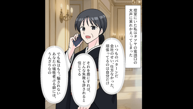 夫に「これ以上幻滅されるようなことしないでよ」と伝え、娘のためにも、夫の父親としての顔を守ろうとした義姉。 しかし夫は「送別会だって、会社のためにやってることだし」と言い訳し、逆ギレしてきたのです。