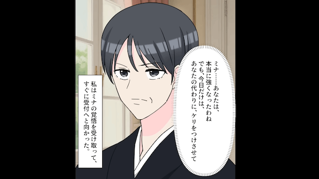 娘の覚悟を受け取った主人公は、受付のスタッフに話しかけ…。