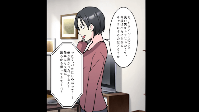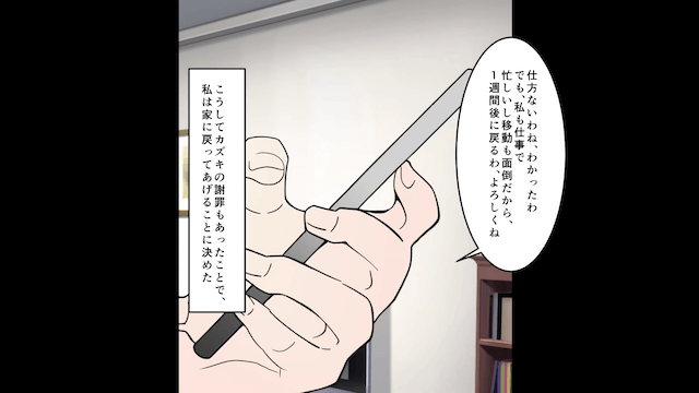 そして焦った夫が謝罪してきたため、主人公は家に帰ることにしたのです。