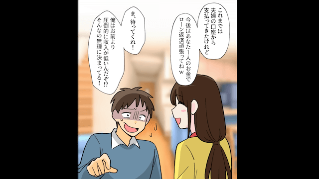 今回は『浮気夫「金ないから慰謝料5倍で頼む!」私「わかった」⇒お望み通り慰謝料を”請求”した結果』を紹介します。 主人公に離婚を突きつけられた夫は「もともとお前には愛想が尽きてたんだ!」と強がりました。 主人公はそんな夫に呆れ「というか、今後の自分の心配したほうがいいんじゃない?」と言い…。