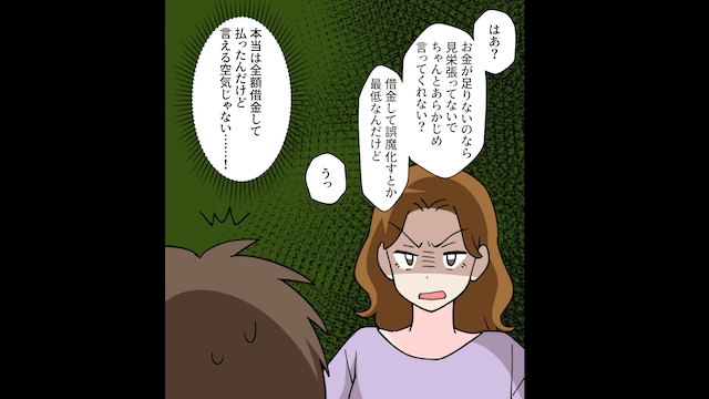 夫は主人公に「頼むから勘弁してくれよぉ」と懇願しますが、許されるはずはなく…。 多額の請求で困り果てた夫は「結婚式の費用も実はちょっと足りなかった分を借金して払ってるんだ」と浮気相手に告白します。