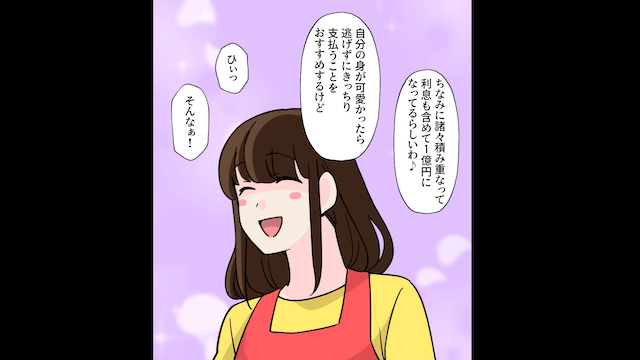 今回は『浮気夫「金ないから慰謝料5倍で頼む!」私「わかった」⇒お望み通り慰謝料を”請求”した結果』を紹介します。 以前、夫と浮気相手の借金を買い取ってまとめているという人物が、主人公のもとを訪ねてきました。 その人物は「あなたも彼らに借金があるなら私に預けて一本化しませんか?」と主人公に提案してきて…。