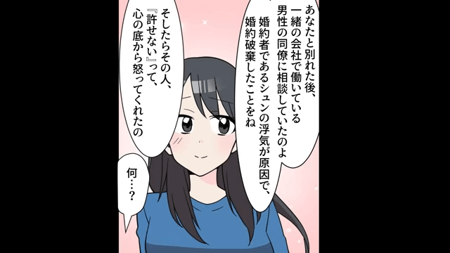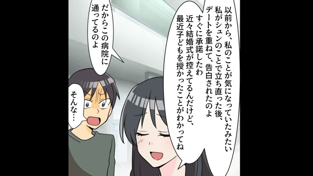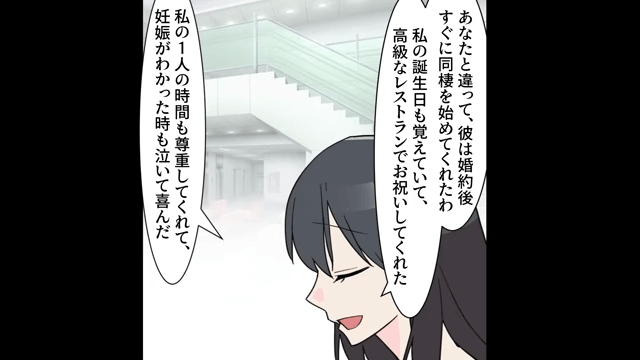 主人公は新しくできた彼氏との子どもを妊娠していることを婚約者に明かしました。 そして近々結婚式を控えていることや、彼氏が婚約後すぐに同棲を始めてくれたことを話したのです。