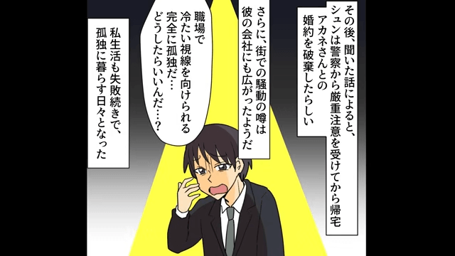 婚約者は職場で冷たい視線を向けられ、私生活も失敗続きで、孤独な日々を送っているようです。 一方、平穏な生活を手に入れた主人公は、仕事もプライベートも充実し、穏やかな未来を歩むのでした。
