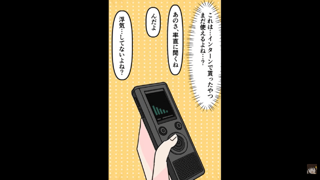 婚約者は主人公に嘘をついていた上、ここ最近は主人公の作る食事も疲れているからと言って食べようとしませんでした。 そこで主人公はボイスレコーダーを取り出し、婚約者に「率直に聞くね」「浮気…してないよね?」と聞いたのです。