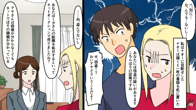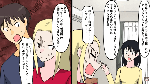 浮気相手は主人公の私物である絵画を売っていましたが、主人公は購入者に事情を話してその絵画を取り戻していました。 そして主人公が浮気相手に絵画の購入代金を返金するよう言うと、浮気相手が「絶対いや!」「お金ないもの!」と言い出して…。