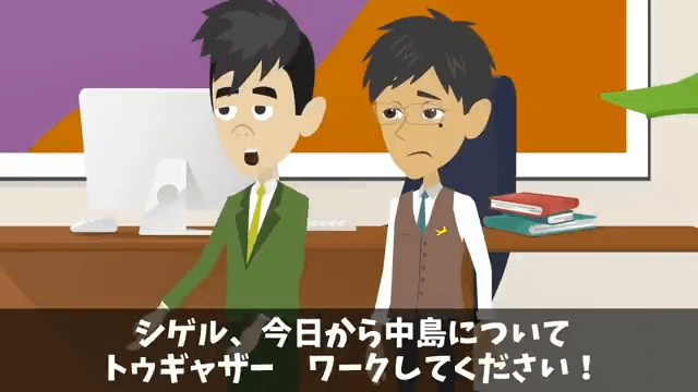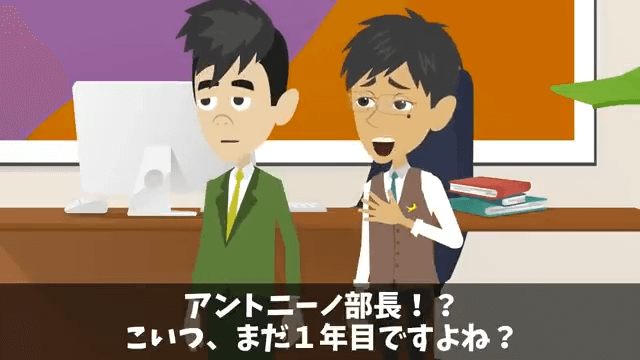 部長は主人公に、今日から上司と一緒に働くようにと伝えます。 すると上司は「こいつ、まだ1年目ですよね?」と不満そうな表情を浮かべました。
