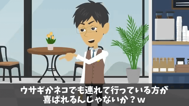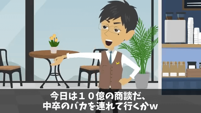 上司が手柄を自分のものにしようとしていたことを知った主人公は「そんなのあんまりじゃないですか!」と嘆きました。 すると上司は、中卒の主人公を連れていくよりも、ウサギかネコを連れていったほうが喜ばれると言い…。