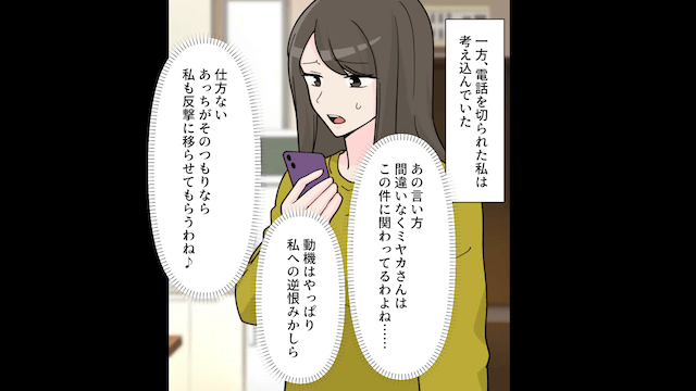 弟嫁の嫌がらせだと考え、すぐに電話をして問い詰めた主人公。 弟嫁は「心当たりはありませーん」と言いましたが、主人公は弟嫁が関わっていると確信したのでした。