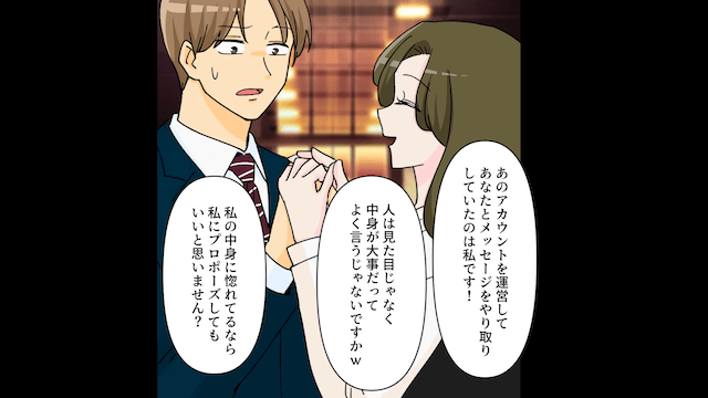 待ち合わせ場所に行った弟嫁は男性に密着し、メッセージの相手は自分だったと明かしました。 そして「あなたに恋をしてしまった」と伝え、男性からのプロポーズを待ったのです。