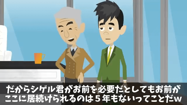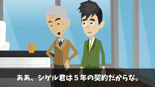 社長は上司に主人公との契約が5年であることを話しました。 そして社長は、早いうちにこの会社を去って新しい職場を探したほうがいいと上司に言ったのです。
