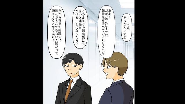 そして社員に主人公の転職先を聞いたついでに、主人公の悪評を広めようとして…。