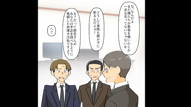 「人望は金で買えるんだからな」と言い、社員や弁護士に偽装を頼んだ父。 しかし主人公に恩がある社員や弁護士は父の頼みを拒否しました。