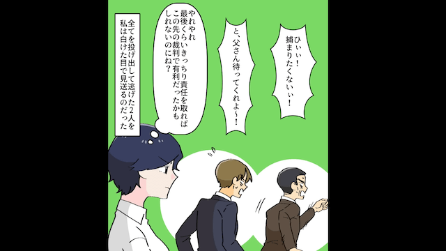 今回は『家業に尽くした私に…父「社長は長男に任せる!」⇒私「じゃあ、会社と娘辞めます」父「は?」』を紹介します。 会社がなくなると知った父は、焦った様子で「俺はどうなるんだ!?」と言いました。 主人公はそんな父に「さっきの言動やそこのお金の件で、警察のお世話になるかもね?」と言い放ち…。