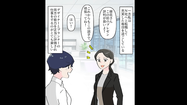 一方、主人公は転職先で能力が評価され、楽しく仕事をするのでした。