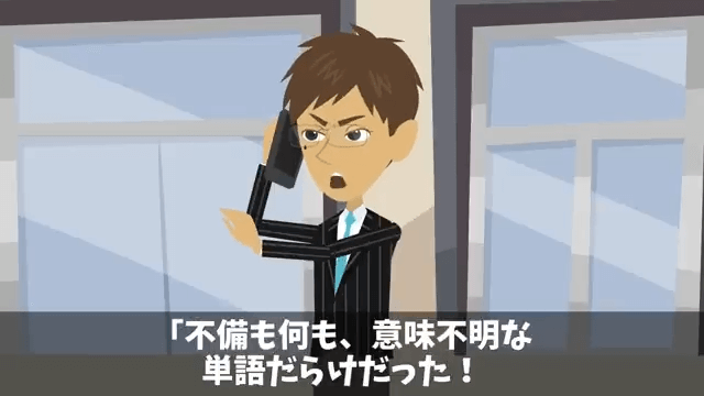 上司は資料が意味不明な単語だらけで、商談が大失敗に終わったと言います。 そこで主人公は上司に「俺は昨日、言いましたよね」と言い…。