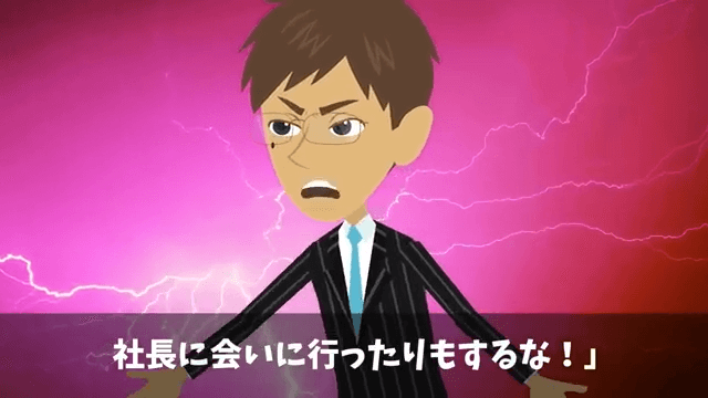 上司は主人公に何かを話したり、社長に会いに行ったりしないよう命じます。 そして、もし勝手な行動をすれば主人公の悪事をでっちあげて社長に伝えると脅してきました。