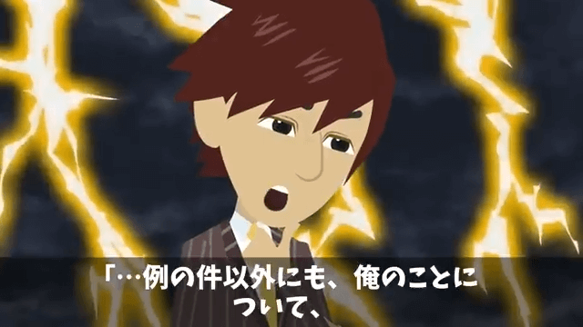 主人公は自分に下された処分があまりに重すぎると思っていました。 そこで主人公は上司に「…例の件以外にも、俺のことについて、何か言ったんじゃないですか?」と尋ねて…。