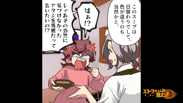 主人公のバイト先は大学の近くにある雰囲気のいいカフェで、主人公は最高のバイト先だと思っていました。 しかしある日、女性客に「スープの色味が悪いんだけど!」とクレームを言われて…。