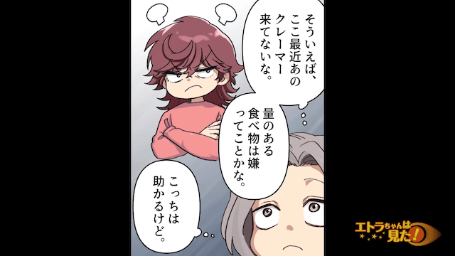 今回は『カフェで…女性客「何この料理!?」⇒”謎クレーマー”に絡まれた話』を紹介します。 空腹の人が満腹の人よりイライラしてしまうことに気づいた主人公は、マスターにそのことを話し、店のメニューに量多めの料理を追加してもらいました。 さらに、料理の持ち帰りも可能にして…。