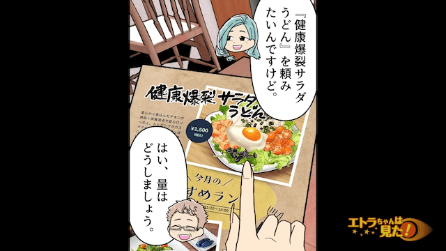 今回は『カフェで…女性客「何この料理!?」⇒”謎クレーマー”に絡まれた話』を紹介します。 無理なダイエットをしていた女性客に「しっかり食べてください」と伝えた主人公。 すると女性客は涙を流しながら「ええ…ありがとう…」と言ったのでした。